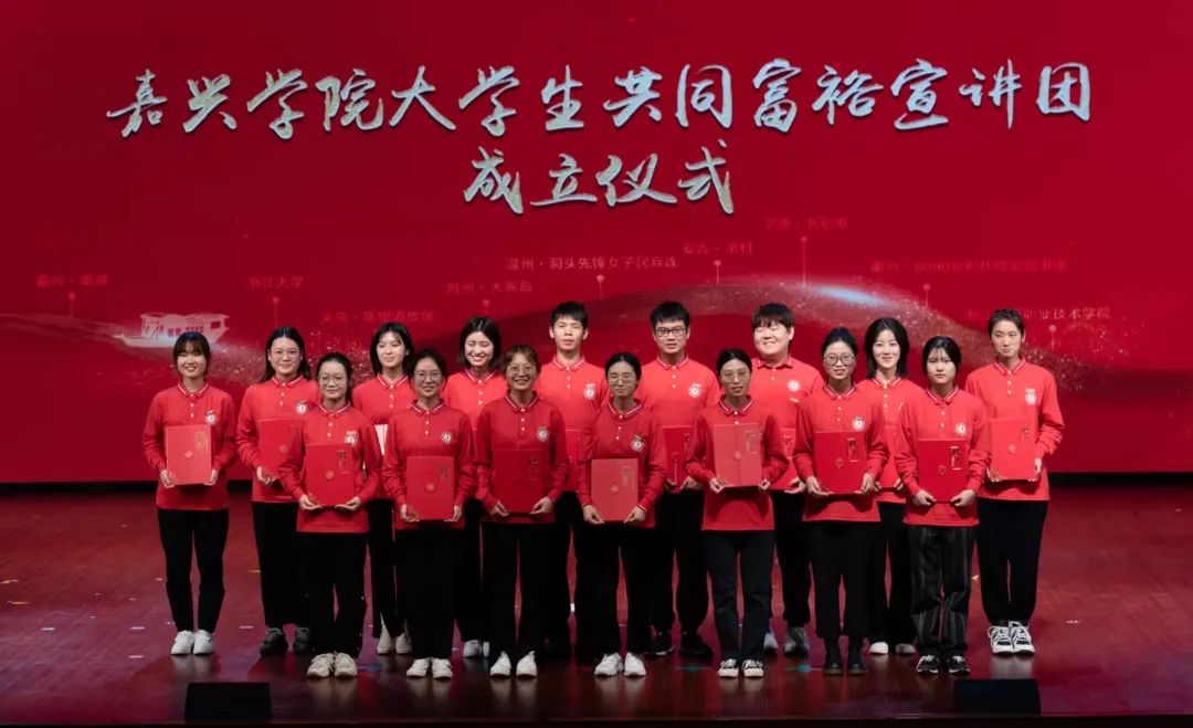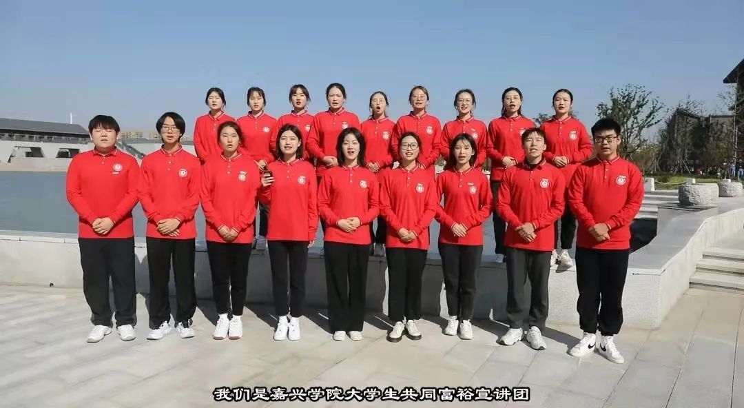 据悉,该宣讲团是国内高校首支大学生共同富裕宣讲团,首期在全校招录了20名青年大学生,专业包括经济学、法学、小学教育、汉语言文学、车辆工程、建筑学、服装与服饰设计、纺织工程等,由嘉兴学院中国共同富裕研究院研究员担任宣讲团指导教师,正在开展理论学习、实践调研等工作。