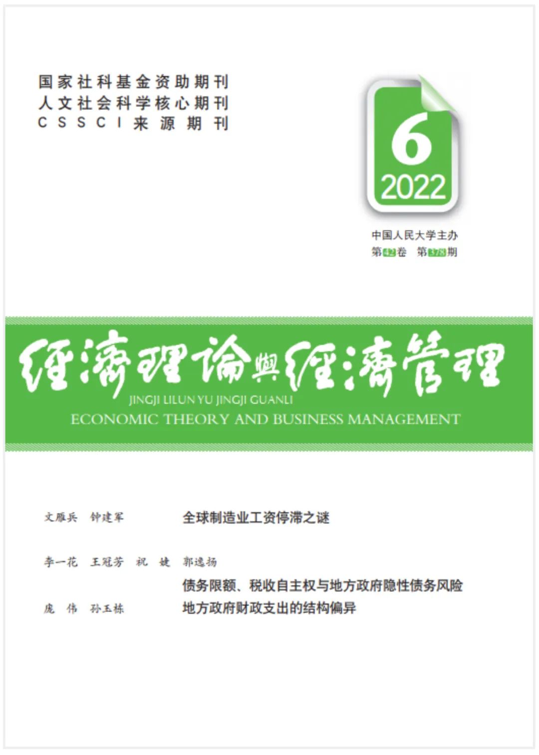 文雁兵教授和宁波大学商学院钟建军博士合作在《经济理论与经济管理》2022年第6期发表本期首篇文章《全球制造业工资停滞之谜》。
