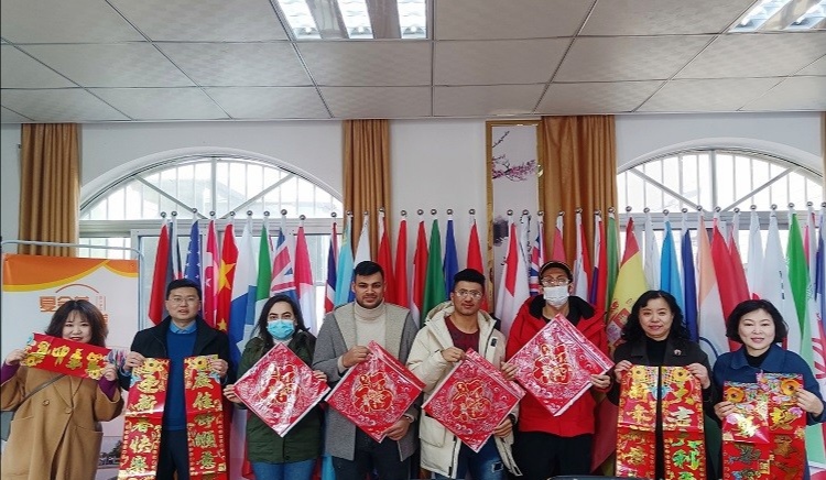 在国际教育学院,学院领导与在国经专业就读的四位留学生进行了座谈。座谈中,院领导对他们在成人网 就读表示欢迎,询问了留学生的学习状态及适应情况,并针对学院近期的发展与规划作出了解答。会后,院领导还向留学生发放了慰问品和春节对联。