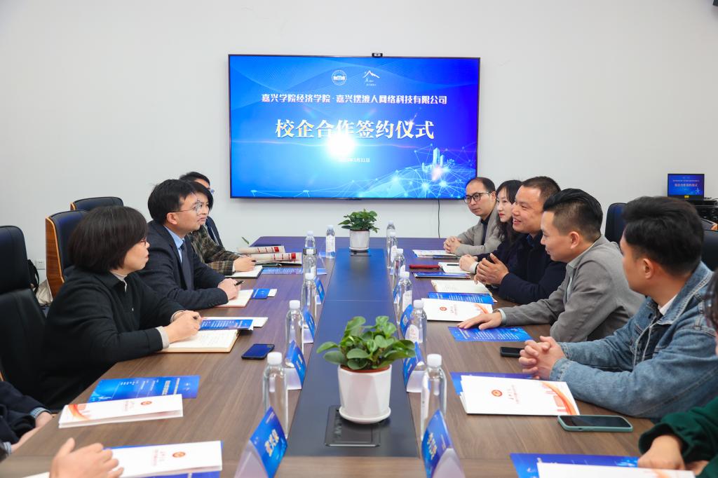 与嘉兴摆渡人网络科技有限公司(阿里巴巴国际站(嘉兴)服务中心)在尚德楼268会议室举行校企合作签约暨捐赠仪式。嘉兴摆渡人网络科技有限公司总经理王学成,嘉兴市电子商务促进会秘书长邹琳,校社会合作处副处长李丹丹,学院院长文雁兵,副院长李亚,企业高管和学院师生代表出席和见证了本次签约与捐赠仪式,会议由李亚主持。