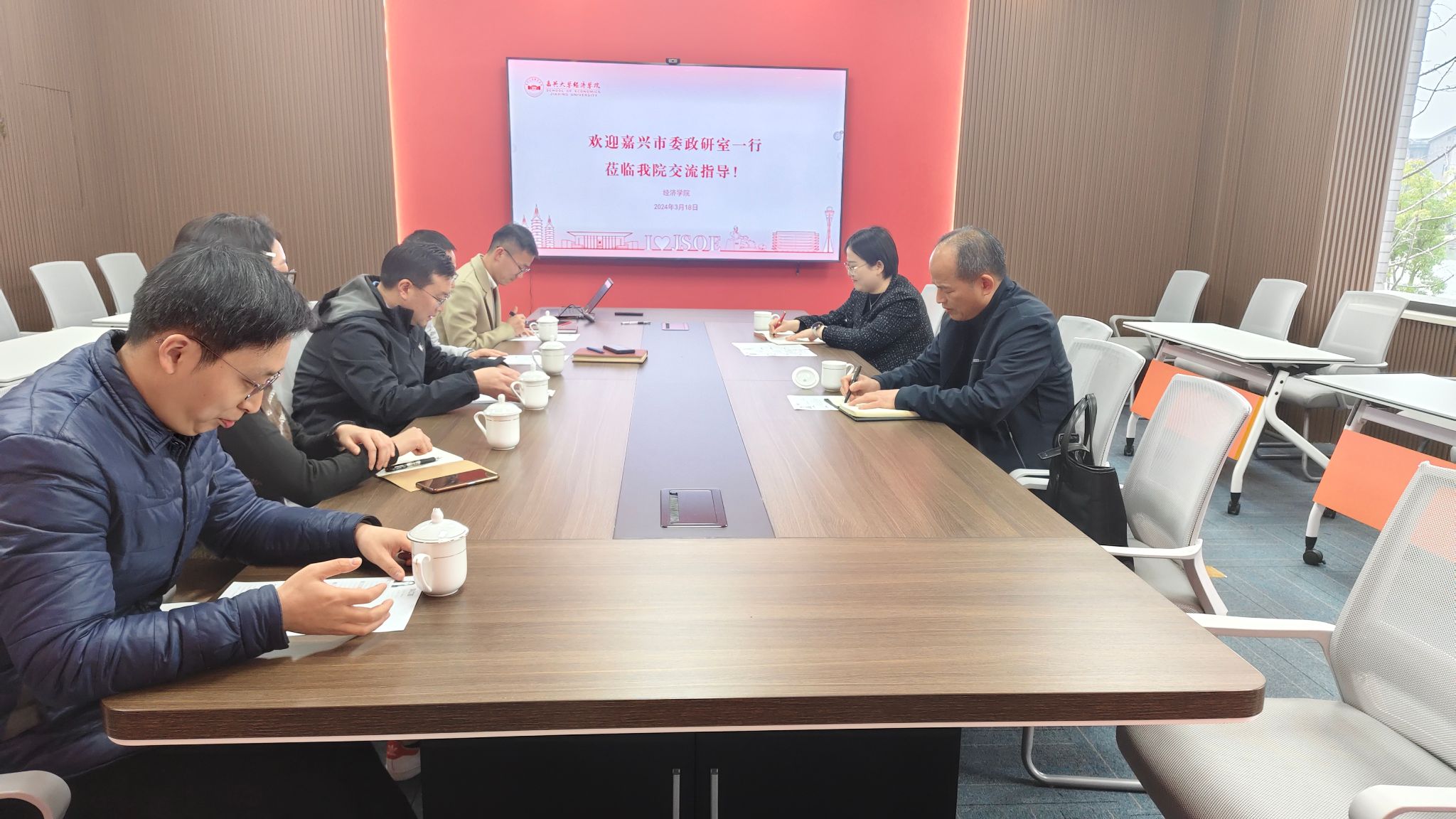 3月18日下午,嘉兴市委政研室副主任陆金泉、嘉兴市委政研室人事秘书处处长金丽赟一行到访成人网