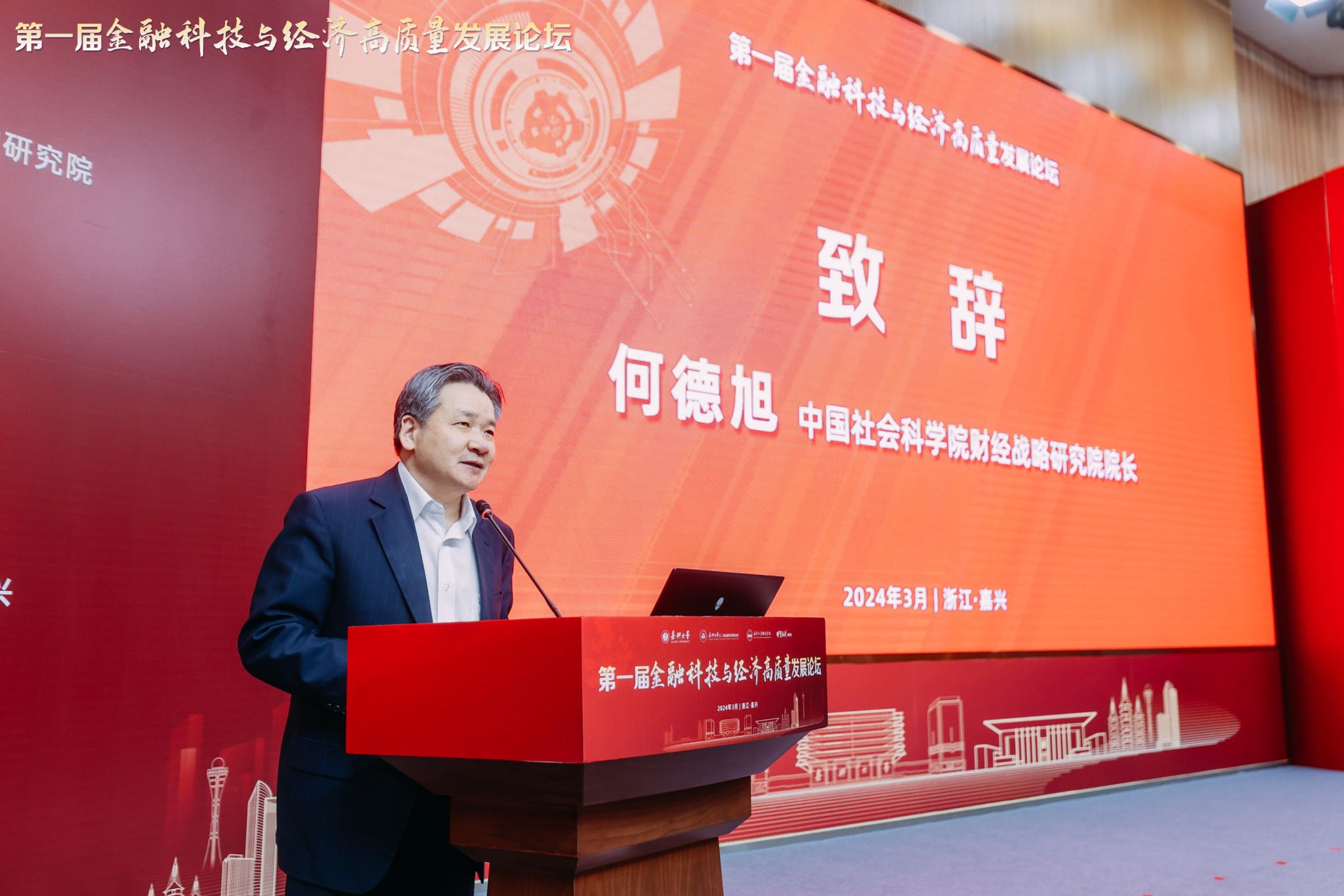 的发展历史、办学特色和未来规划,以及嘉兴经济社会发展的突出成绩、独特优势和发展潜力。他表示,金融是国民经济的血脉,是国家核心竞争力的重要组成部分,全国上下正深入学习贯彻中央金融工作会议精神,围绕走好中国特色金融发展之路和建设中国金融强国目标,做好科技金融、绿色金融、普惠金融、养老金融、数字金融五篇大文章,助力实体经济高质量发展,本次论坛围绕金融科技与经济高质量发展,聚焦金融强国建设的热点问题、前沿问题、痛点问题,展开深入交流和讨论,有助于为学术研究提供新方向,为企业发展提供新思路。