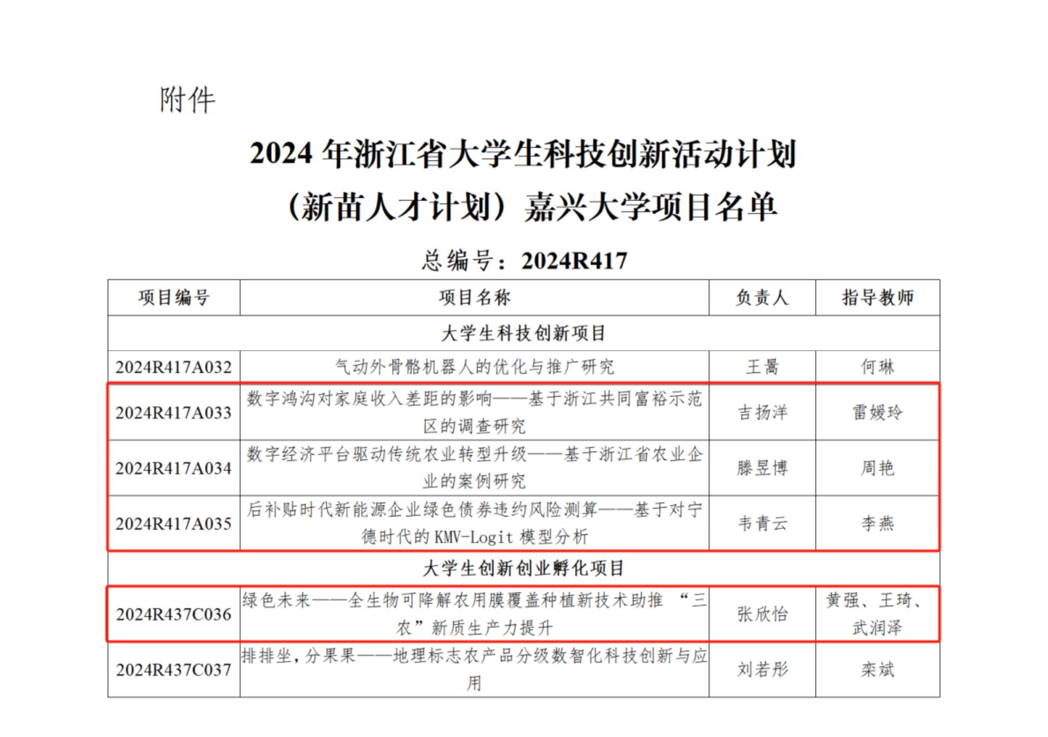 【经院喜报】成人网 获4项2024年浙江省大学生科技创新活动计划 (新苗人才计划)立项