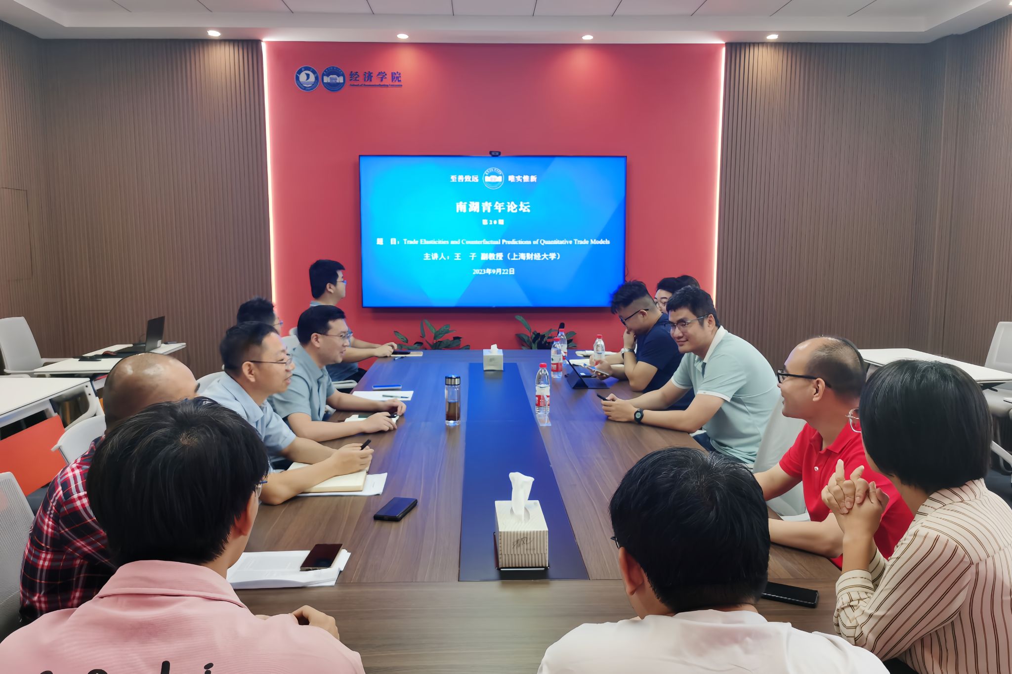 在尚德楼268会议室成功举办第20期南湖青年论坛。上海财经大学王子副教授(长聘)应邀作题为《Trade Elasticities and Counterfactual Predictions of Quantitative Trade Models》的学术报告,成人网