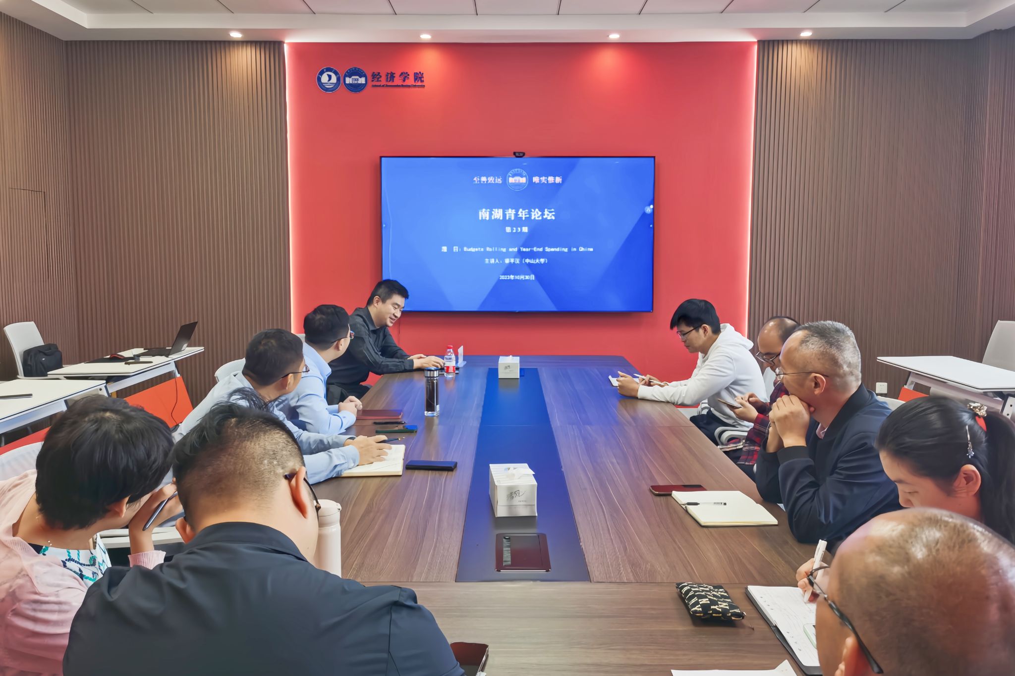 10月30日,成人网 在尚德楼268会议室成功举办第23期南湖青年论坛。中山大学政治与公共管理学院梁平汉教授应邀作题为《Budgets Rolling and Year-End Spending in China》的学术报告,成人网 院长文雁兵教授主持,学院多名教师共同参与研讨。
