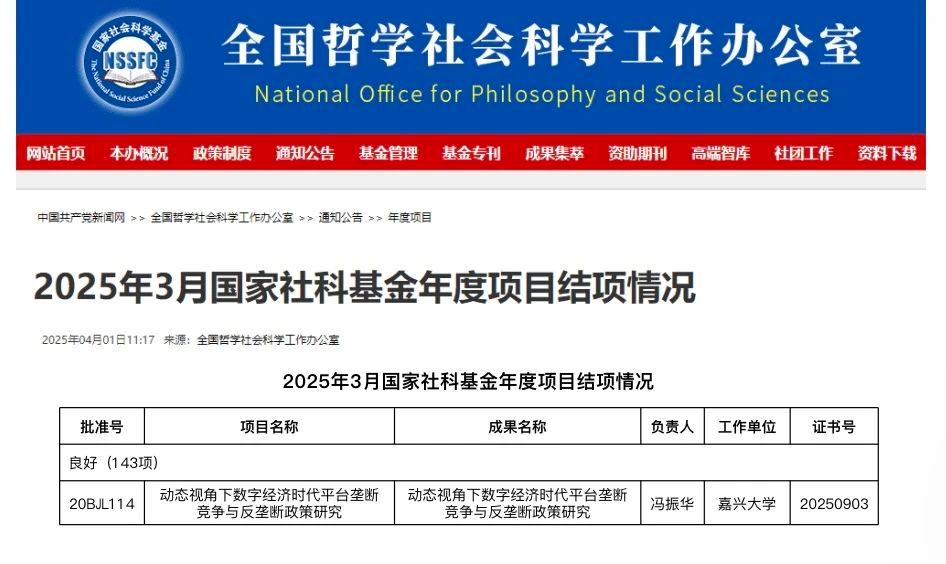 近日,成人网 冯振华副教授主持的国家社科基金一般项目“动态视角下数字经济时代平台垄断竞争与反垄断政策研究”顺利通过验收审批,鉴定等级为良好