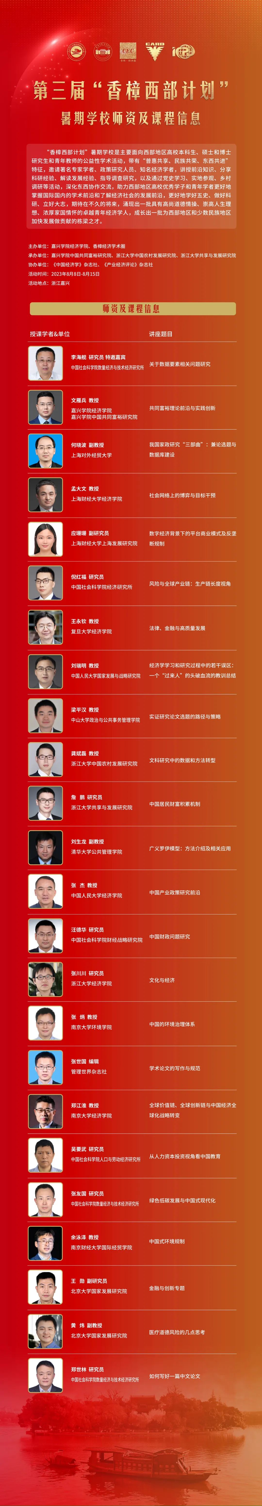 第三届“香樟西部计划”暑期学校师资及课程信息