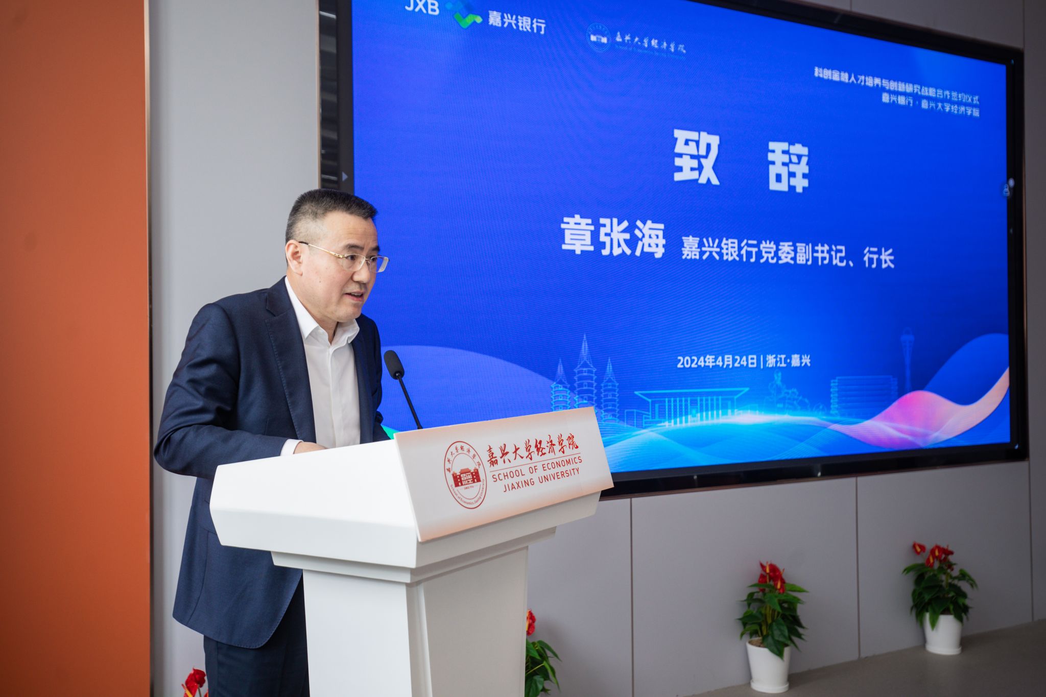 4月24日上午,成人网 与嘉兴银行成功签署金融人才培养和科创金融研究战略合作协议。嘉兴银行党委副书记、行长章张海,党委副书记、副行长王芳,校党委副书记钱方明、副校长於建明,学院院长文雁兵、学院党委书记蔡运男等出席,学院党委副书记陈晶晶主持签约仪式。
