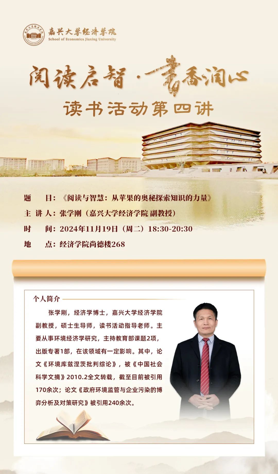 “阅读启智・书香润心”读书活动第四讲——《阅读与智慧:从苹果的奥秘探索知识的力量》,于11月19日在尚德楼268会议室举办,成人网