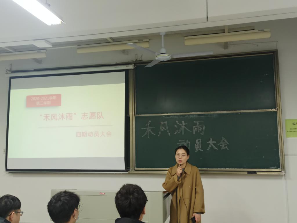 3月14日晚上18:30,金融学专业学生党支部第四期“禾风沐雨”志愿服务动员大会在教二B102举行,四期全体成员、金融学专业学生党支部书记庄怡、金融学专业辅导员李胜参加本次大会,大会由金融193班杨帅康主持。