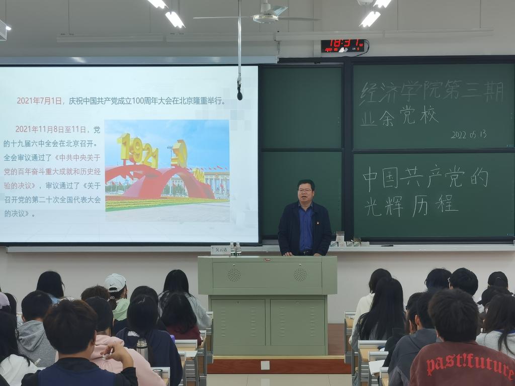 513日晚上,成人网 第期业余党校在明德楼236进行授课。嘉兴学院党委副书记吴云达应邀讲授题为《中国共产党的光辉历程》的专题党课。成人网 第期业余党校全体学员参加。