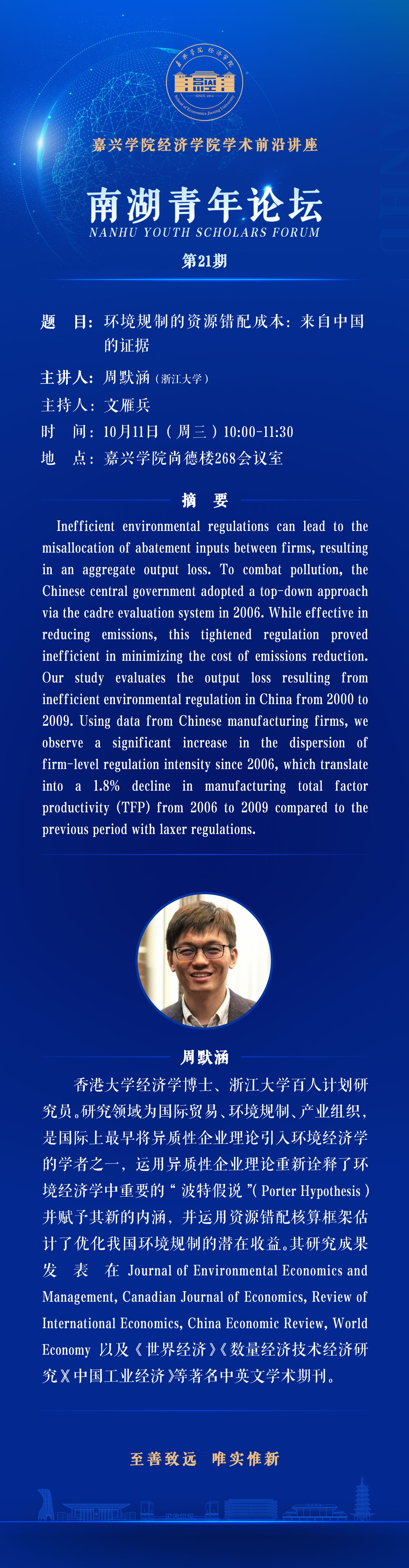 南湖青年论坛NO.21:环境规制的资源错配成本:来自中国的证据