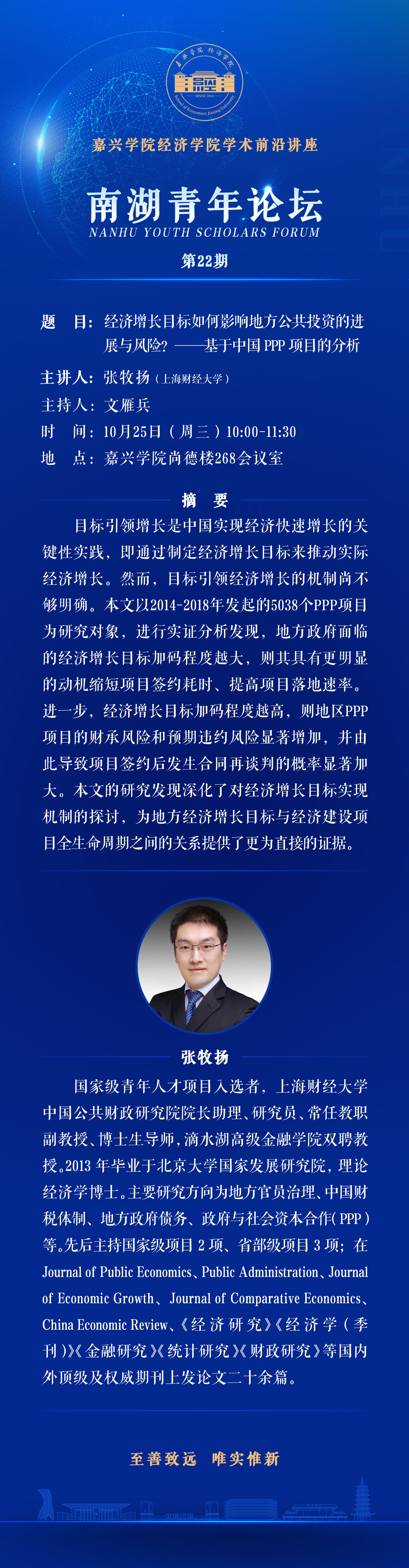 南湖青年论坛No.22:经济增长目标如何影响地方公共投资的进展与风险?——基于中国PPP项目的分析