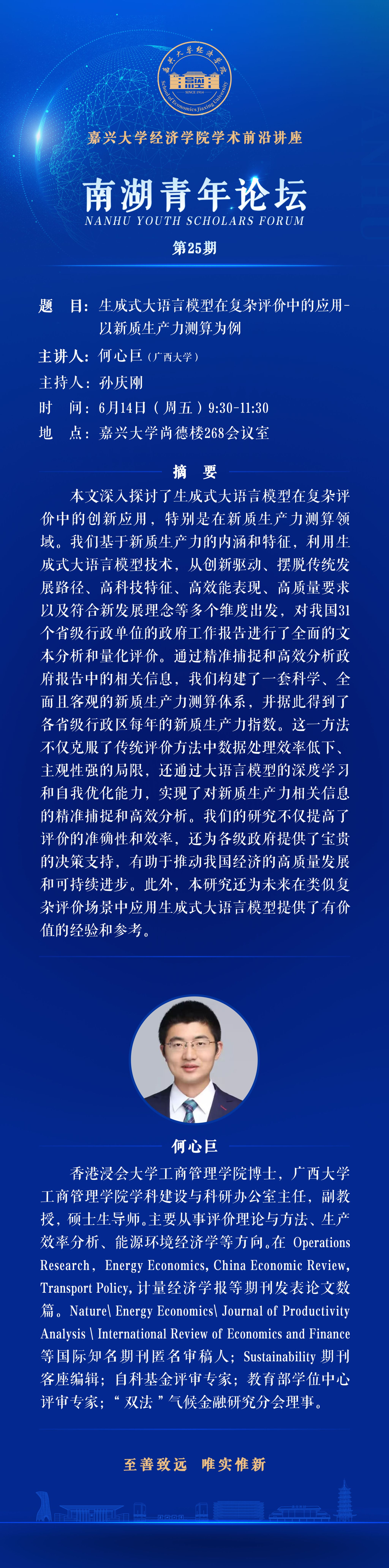 南湖青年论坛No.25:生成式大语言模型在复杂评价中的应用-以新质生产力测算为例