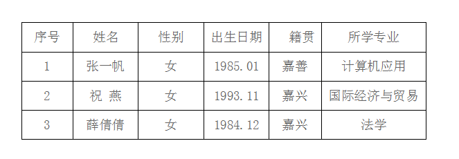根据《嘉兴学院中国共同富裕研究院招录非编工作人员公告》(2021年4月12日发),按照拟定的行政秘书招聘条件,经报名与资格初审,现将进入资格复审与面试的名单公布如下(按姓氏笔画):