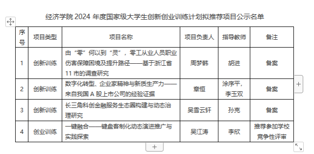 成人网 2024年度国家级大学生创新创业训练计划拟推荐项目公示