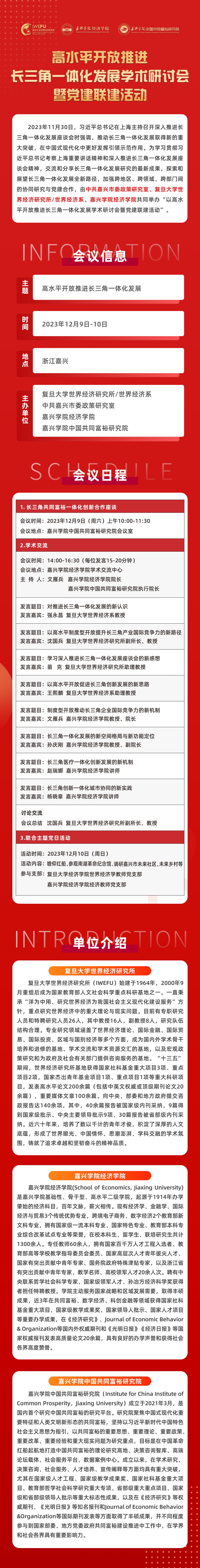 【会议通知】高水平开放推进长三角一体化发展学术研讨会暨党建联建活动